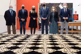 La consejera de Cultura y Patrimonio Histórico, Patricia del Pozo, ha presentado en el Instituto Andaluz del Patrimonio Histórico (IAPH) el resultado de la restauración del manto procesional de la Virgen de los Dolores de la Hermandad del Cerro de Sevilla, "que volverá a lucir todo su esplendor el próximo Martes Santo tras una minuciosa intervención de cuatro meses en el taller de tejidos del Instituto".