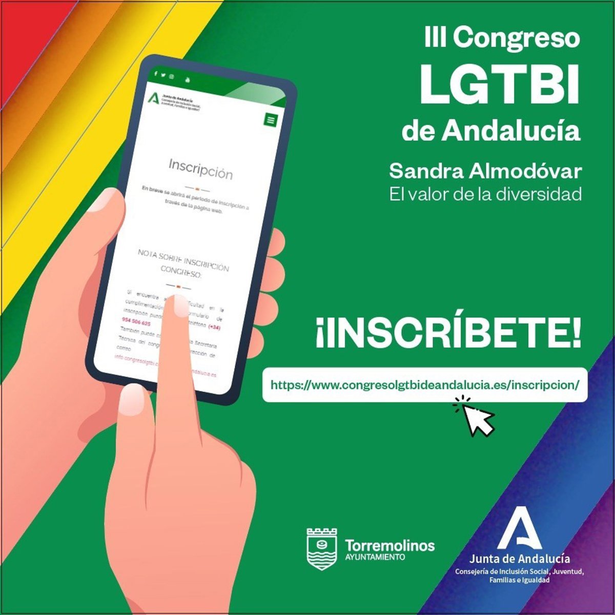 El III Congreso Internacional Lgtbi de Andalucía tuvo como objeto buscar soluciones conjuntas para garantizar el pleno respeto y la protección del derecho a la diversidad afectivo-sexual y a la identidad de género en su dimensión individual, familiar y social, así como promover la concienciación, la sensibilización, la formación y la correcta actuación en materia de diversidad de los y las profesionales de la Junta de Andalucía que prestan servicios en los distintos ámbitos de actuación.