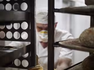 Archivo - Un trabajador protegido con mascarilla maneja bandejas para cocer pan, foto de recurso - Eduardo Sanz - Europa Press - Archivo