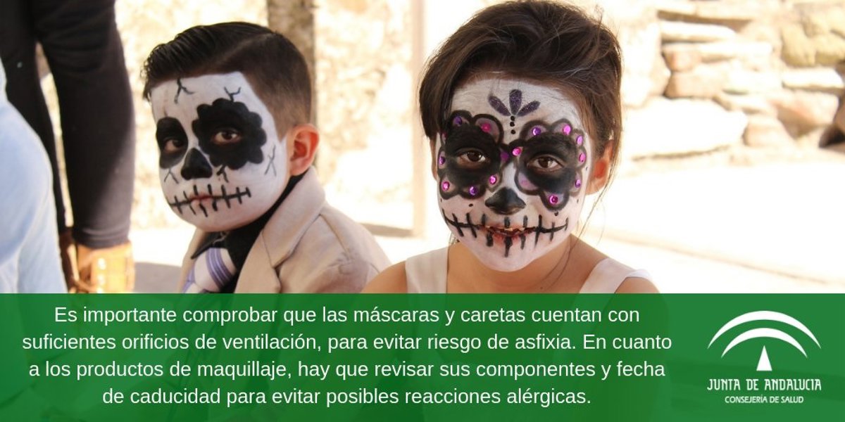 En el caso de las máscaras, es importante comprobar que cuentan con suficientes orificios de ventilación, para evitar riesgo de asfixia. En cuanto a los productos de maquillaje, hay que revisar detenidamente sus componentes, así como la fecha de caducidad antes de utilizarlos, para evitar posibles reacciones alérgicas.