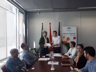 El delegado territorial de Economía, Innovación Ciencia y Empleo en Sevilla, Juan Borrego, en representación de Andalucía Emprende, y la directora provincial de dicha fundación, han suscrito este lunes contratos de alojamiento con cinco empresas de la provincia de muy diversos sectores.