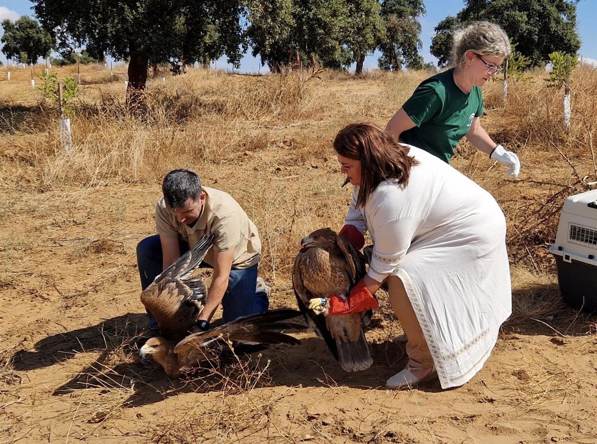 La delegada territorial, Inmaculada Gallardo, y el jefe de Servicio de Gestión del Medio Natural, Antonio Garzas, participan en la liberación de dos ejemplares de águila imperial. - JUNTA DE ANDALUCÍA