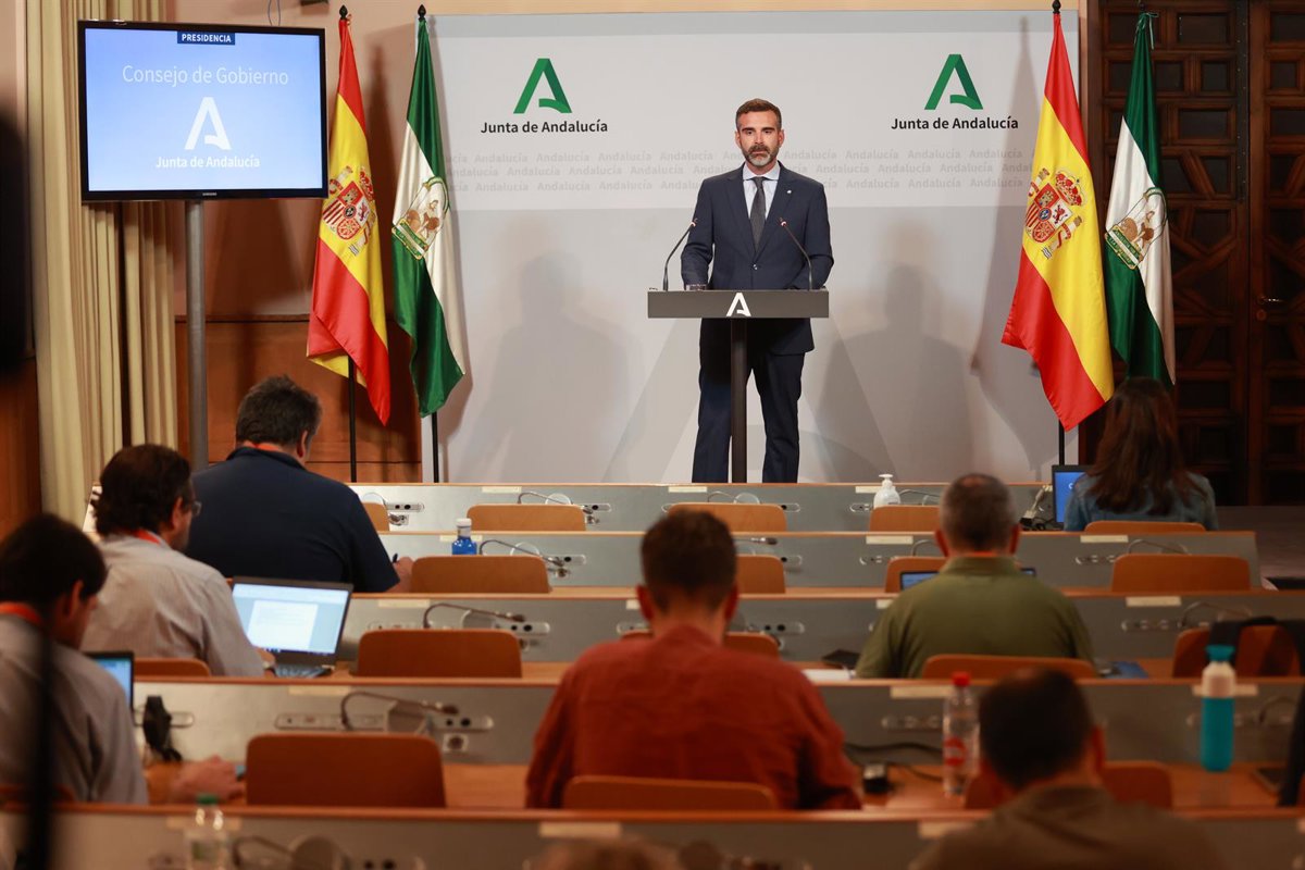 El consejero de Sostenibilidad, Medio Ambiente y Economía Azul de la Junta de Andalucía y portavoz del gobierno, Ramón Fernández-Pacheco, en la rueda de prensa tras el Consejo de Gobierno andaluz en el Palacio de San Telmo. A 26 de septiembre de 2023, e - Rocío Ruz - Europa Press