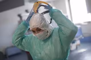 Una sanitaria se retira la pantalla protectora. Foto de archivo - Eduardo Parra - Europa Press