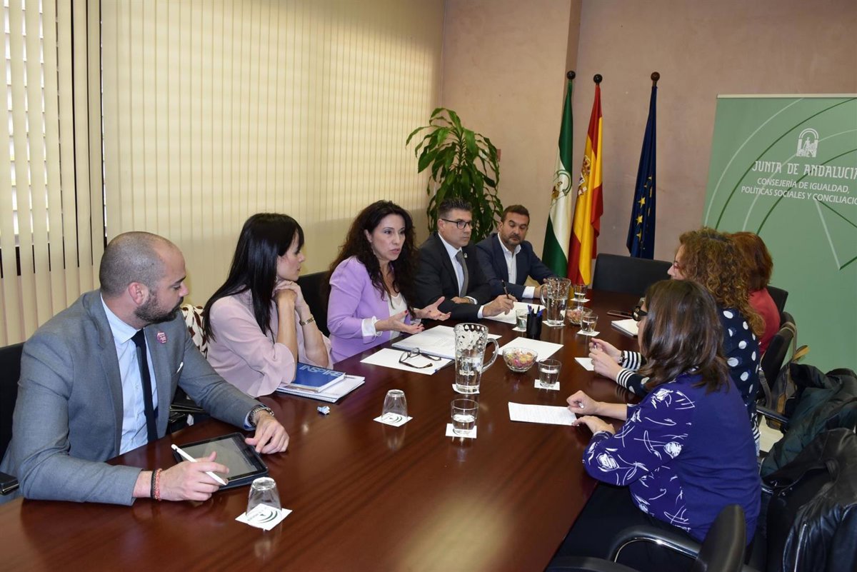 La consejera de Igualdad, Políticas Sociales y Conciliación, Rocío Ruiz, con representantes del sindicato CCOO-A - JUNTA