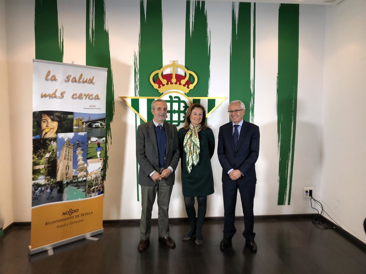 La delegada territorial de Igualdad, Salud y Políticas Sociales de la Junta de Andalucía, María Ángeles Fernández; el concejal delegado de Bienestar y Empleo del Ayuntamiento de Sevilla, Juan Manuel Flores, y el director general del Real Betis Balompié, Federico Martínez Feria, han suscrito un acuerdo de colaboración que tiene como objetivo establecer un marco jurídico e institucional para impulsar la celebración conjunta de iniciativas científicas, técnicas y de investigación destinadas a promocionar la salud y prevenir la enfermedad.