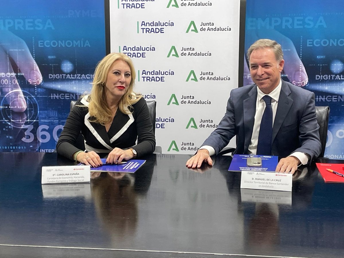 La rúbrica del acuerdo, que ha tenido lugar en la sede de Andalucía Trade, ha correspondido a la consejera de Economía, Hacienda, Fondos Europeos y Diálogo Social, y portavoz del Gobierno andaluz, Carolina España, en calidad de presidenta de Andalucía Trade, y a Manuel de la Cruz, como director territorial del Banco Santander en Andalucía, según ha detallado el Ejecutivo andaluz en un nota.