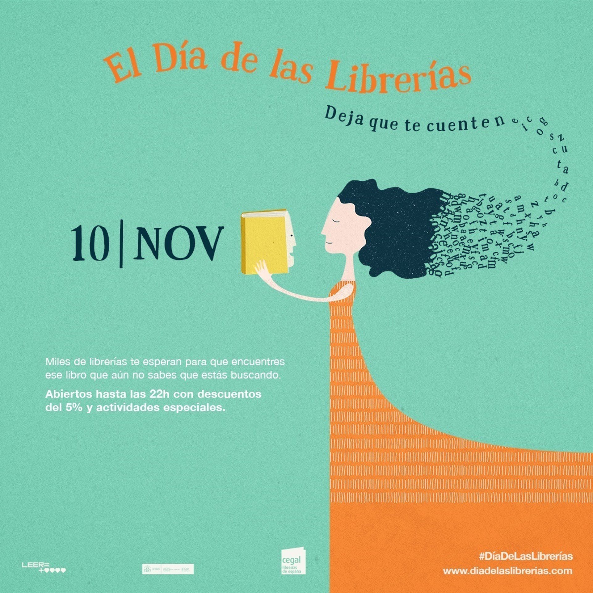 Esta conmemoración tiene como objetivo el acercar estos espacios de libertad a la ciudadanía. Más de 1.000 librerías afiliadas a la Confederación Española de Gremios y Asociaciones de Libreros (Cegal) permanecerán abiertas hasta las 22,00 horas, y harán un cinco por ciento de descuento en todas las compras, además de las actividades programadas para los lectores: encuentros con autores y firmas de ejemplares, cuentacuentos, coloquios, lecturas, concursos, conciertos literarios, actividades de animación, etcétera.