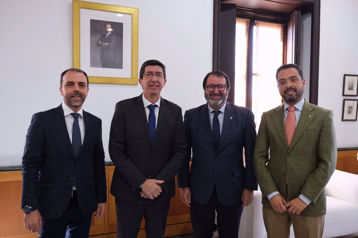 El vicepresidente de la Junta de Andalucía y consejero de Turismo, Regeneración, Justicia y Administración Local, Juan Marín, se ha reunido este martes con el alcalde de Carmona, Juan Manuel Ávila Gutiérrez, para interesarse por la situación en la que se encuentra la ruta Bética Romana. Una red que pasa hoy por 14 localidades