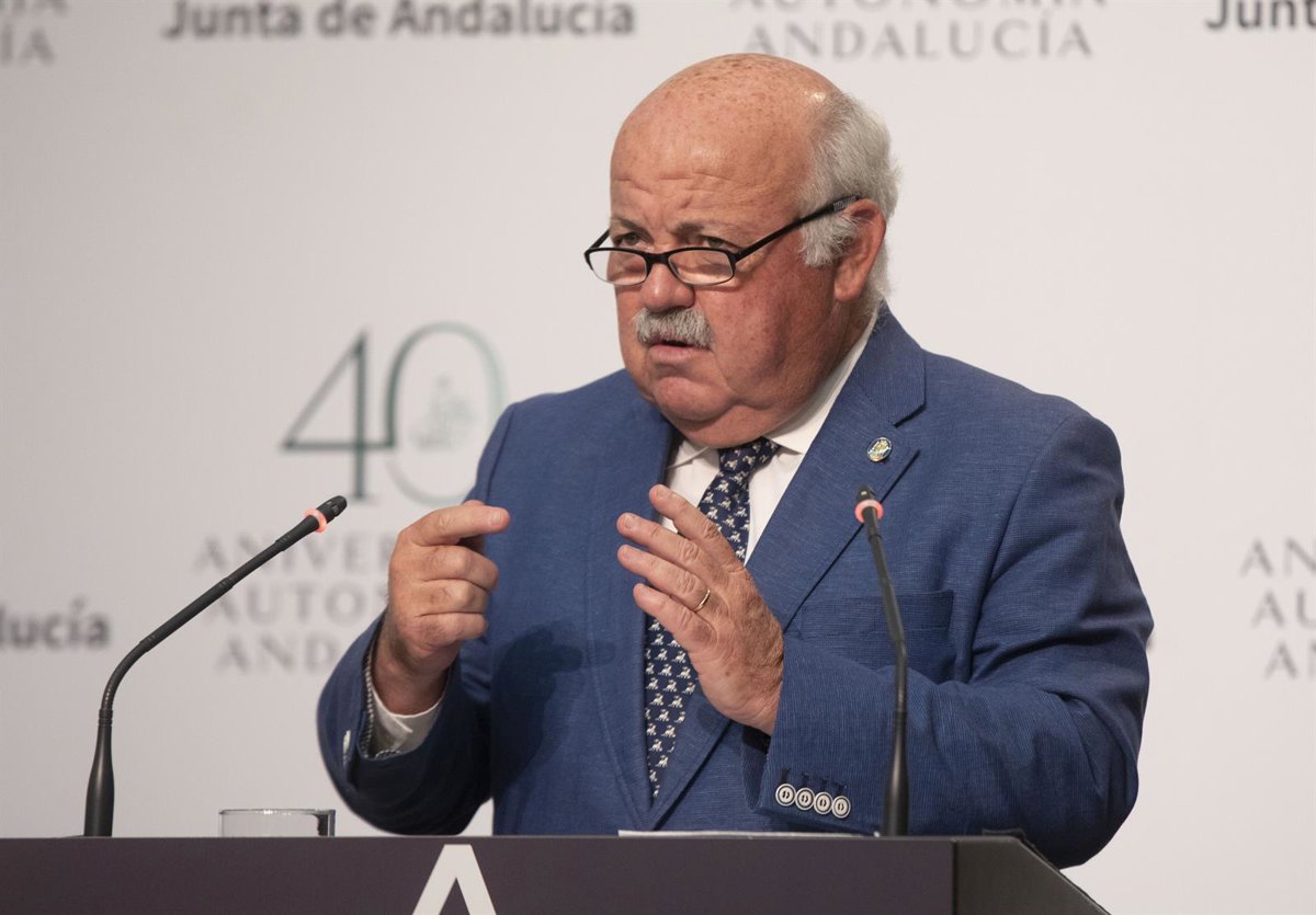 El consejero de Salud y Familias, Jesús Aguirre, durante la rueda de prensa tras la reunión semanal del Consejo de Gobierno de la Junta de Andalucía, a 18 de mayo de 2021. - María José López - Europa Press