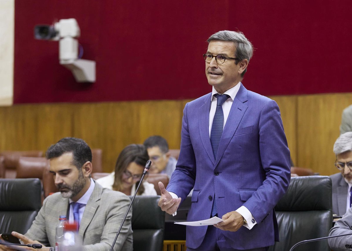 El consejero de Industria, Energía y Minas, Jorge Paradela, durante la sesión de control al Gobierno en el pleno del Parlamento andaluz. - JOAQUÍN CORCHERO / PARLAMENTO DE ANDALUCÍA