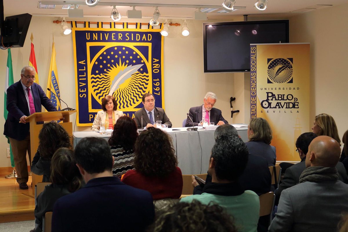 La consejera de Igualdad y Políticas Sociales, María José Sánchez Rubio, ha subrayado la labor y proximidad que desempeñan los más de 27.7000 profesionales de Trabajo Social en Andalucía con las personas que más lo necesitan, un papel que se verá reforzado con la próxima Ley de Servicios Sociales. La consejera se ha pronunciado así en la Universidad Pablo de Olavide de Sevilla, donde ha intervenido en el Acto del Día Internacional del Trabajo Social organizado la institución universitaria y el Colegio Profesional de Trabajo Social de Sevilla, con la participación del rector de la UPO, Vicente Guzmán, y el presidente del Colegio, Gonzalo Cañestro.