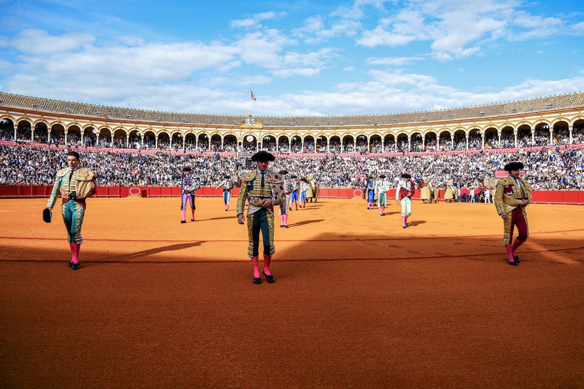 Archivo - Los toreros, Morante de la Puebla (d), Alejandro Talavante (i), Daniel Luque Luque (c) durante el primer festejo de la temporada en Sevilla. A 20 de abril de 2025 en Sevilla, Andalucía (España). (Foto de archivo). - Francisco J. Olmo - Europa Press - Archivo