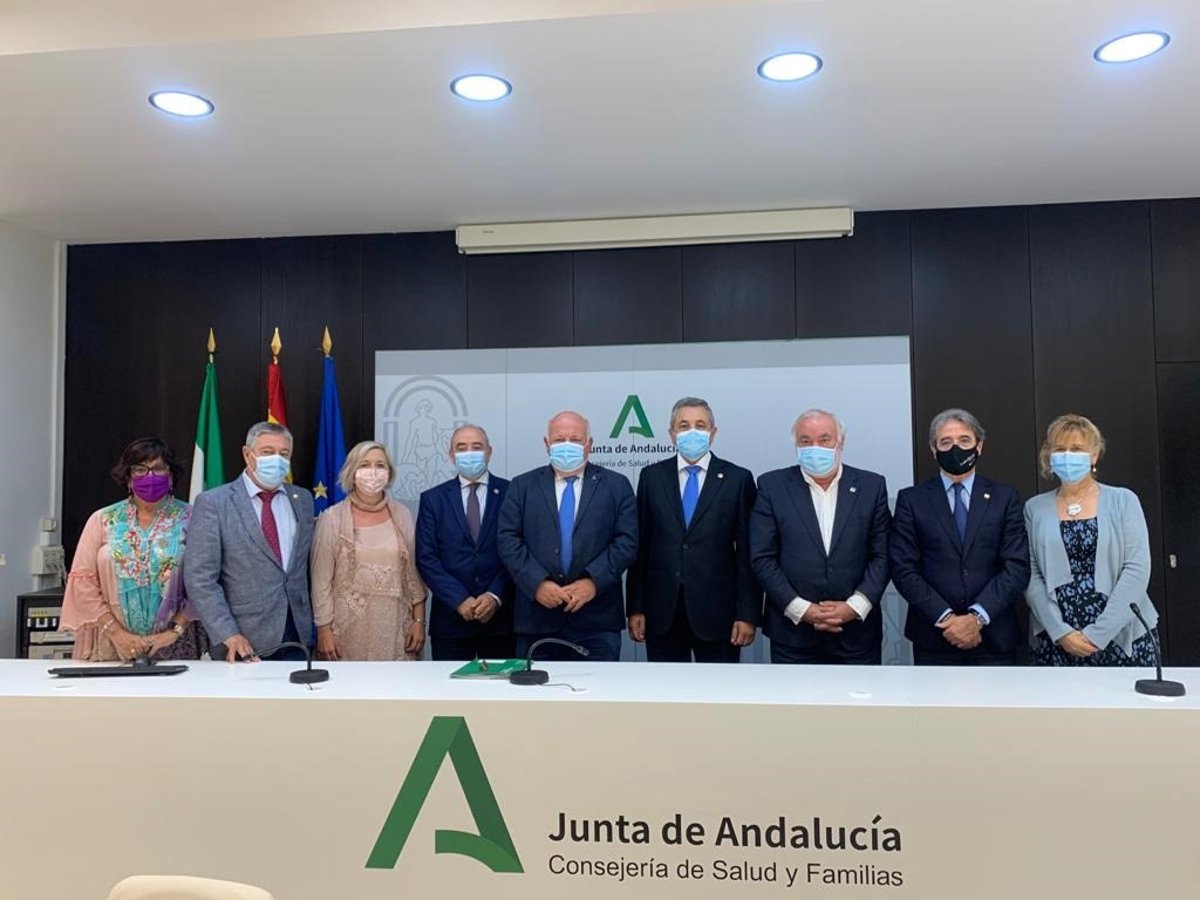 El consejero de Salud y Familias de la Junta de Andalucía, Jesús Aguirre, en una reunión con el Consejo Andaluz de Enfermería. - JUNTA