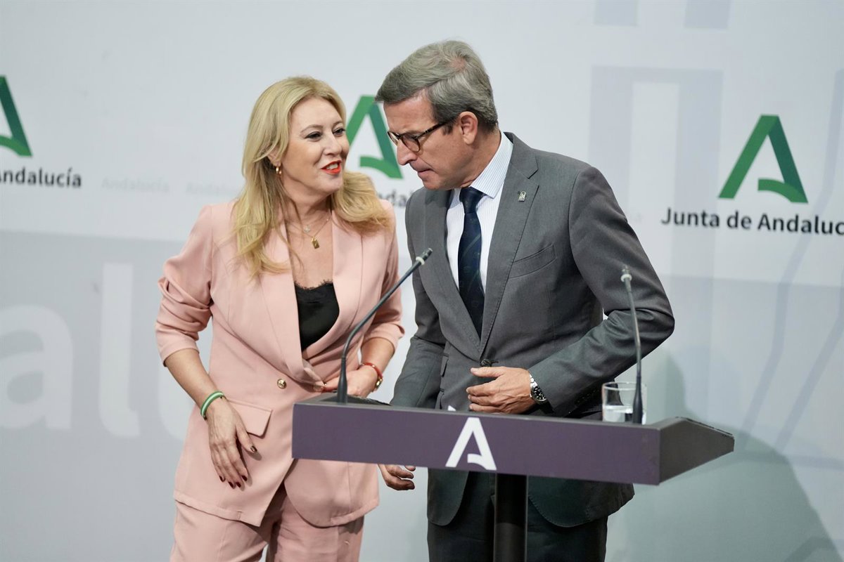 La consejera de Economía, Hacienda, Fondos Europeos y Diálogo Social de la Junta de Andalucía y portavoz del Gobierno, Carolina España, junto al consejero de Industria, Energía y Minas de la Junta de Andalucía, Jorge Paradela. - María José López - Europa Press