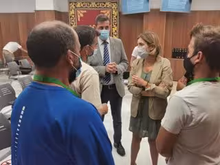 Blanco ha acudido este miércoles al Ayuntamiento de Pilas junto a la corporación municipal, presidida por el alcalde José Leocadio Ortega, a un acto de entrega de acreditaciones de la iniciativa AIRE a los primeros trabajadores contratados en la localidad, según ha informado la Consejería por medio de una nota.