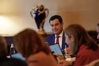 El presidente de la Junta de Andalucía, Juanma Moreno preside la reunión del Consejo de Gobierno y, al término de la sesión, comparece en rueda de prensa. - Junta de Andalucía - Archivo