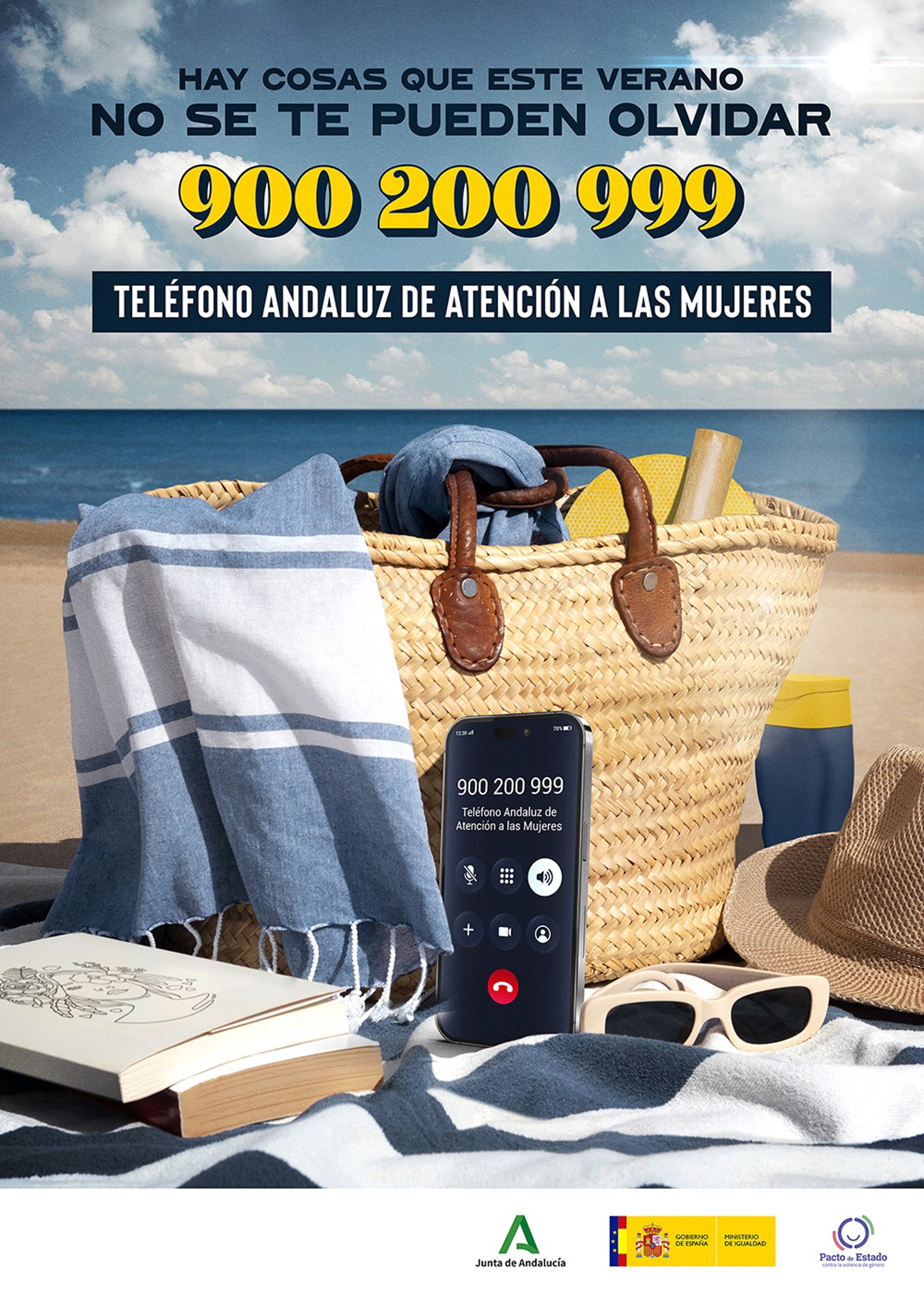 La Junta de Andalucía refuerza la lucha contra la violencia de género y lanza la campaña Hay cosas que este verano no se te pueden olvidar 900 200 999. Teléfono andaluz de atención a las mujeres, que impulsa la Consejería de Inclusión Social, Juventud, Familias e Igualdad, a través del Instituto Andaluz de la Mujer (IAM). En su presentación, la consejera del ramo, Loles López, ha destacado que el IAM "no se va de vacaciones" y ha llamado a las mujeres y su entorno a "no bajar la guardia" ante la violencia de género y sexual durante esta época estival.