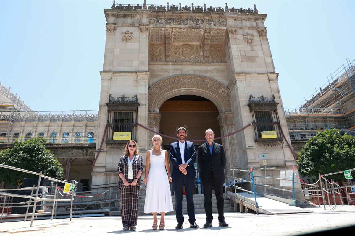Archivo - El ministro de Cultura, Ernest Urtasun, la consejera de Cultura, Patricia del Pozo, y el arquitecto Vázquez Consuegra, durante la visita a las obras del Museo Arqueológico. A 07 de julio de 2025, en Sevilla (Andalucía, España). - Rocío Ruz - Europa Press - Archivo
