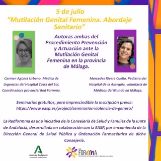 Este lunes, a partir de las 17,00 horas se realizará un seminario centrado en el abordaje sanitario de la mutilación genital femenina. Contará con Carmen Agüera, médica de urgencias del Hospital Costa del Sol, y Mercedes Rivera, pediatra del Hospital de la Axarquía. Ambas son autoras del 'Procedimiento de Prevención y Actuación ante la Mutilación Genital Femenina en la provincia de Málaga'.