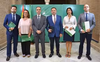 El delegado de la Junta de Andalucía en Sevilla, Ricardo Sánchez, ha comparecido este lunes en rueda de prensa para dar cuenta de los aspectos provinciales de los presupuestos autonómicos de 2019, junto con delegados territoriales de las diferentes consejerías; Javier Loscertales (Empleo, Formación, Trabajo Autónomo, y Economía, Conocimiento, Empresas y Universidad), Regina Serrano (Salud y Familias), Javier Millán (Turismo, Regeneración, Justicia y Administración Local), María Isabel Solís (Agricultura, Ganadería, Pesca y Desarrollo Sostenible) y Joaquín Pérez Blanes (Educación, Deporte, Igualdad, Políticas Sociales y Conciliación).