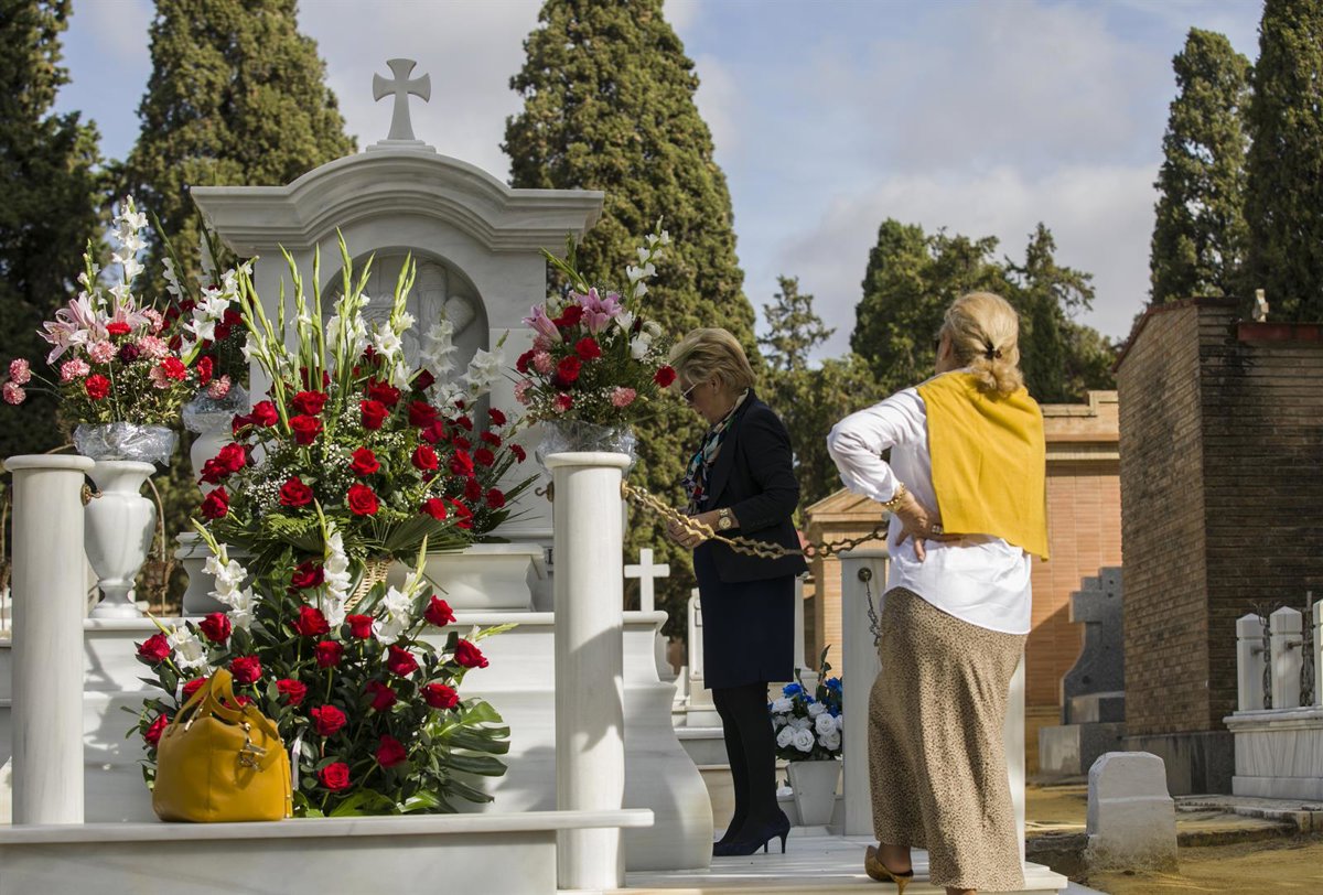 Cementerio de San Fernando en la festividad de Todos los Santos Personas visitan y arreglan con flores las tumbas de sus familiares en esta festividad. En Sevilla, a 01 de noviembre de 2019. (Foto de archivo). - María José López - Europa Press - Archivo