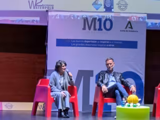Este proyecto estratégico de la Junta se lleva a cabo de manera progresiva en diferentes niveles formativos y municipios andaluces. Así, el Salón de Actos del Edificio Tecnológico Ciudad del Conocimiento de Dos Hermanas ha sido el marco elegido para la sesión con Pedro García Aguado. A ella, han acudido, además de la delegada territorial, la edil de Deporte del Ayuntamiento de Dos Hermanas, Victoria Tirsa, y la presidenta del Club Waterpolo Dos Hermanas, Ana Arechavaleta.