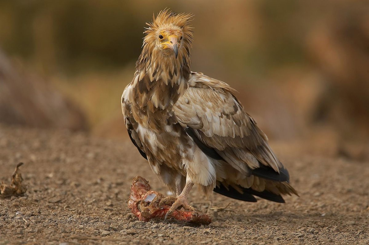 Esta ave es la más pequeña de las cuatro rapaces estrictamente carroñeras europeas y una de las más oportunistas en cuanto a su ecología trófica, alimentándose de cualquier tipo de carroña --mamíferos, aves, peces, reptiles y anfibios--, basuras domésticas, excrementos e insectos; en definitiva, pequeños trozos, lo que la hace "muy vulnerable" a los cebos envenenados, que, junto a las colisiones con aerogeneradores, son las principales causas de mortalidad.