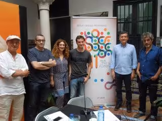 La XI edición del ciclo 'Cine y flamenco', una actividad organizada por el Instituto Andaluz del Flamenco (IAF) de la Consejería de Cultura en colaboración con el Centro de Iniciativas Culturales de la Universidad de Sevilla (Cicus) se ha presentado en la sede del IAF, En el acto de presentación han estado el secretario general de Cultura, Eduardo Tamarit, y el director del Centro de Iniciativas Culturales de la Universidad de Sevilla (Cicus), Luis Méndez.