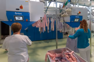 La lavandería fue renovada en 2018, incluyendo la dotación de tecnología de última generación que permite automatizar tareas muy pesadas para los trabajadores. Desde esta fecha, cuenta con un túnel de lavado nuevo, dos líneas de planchado nuevas y un nuevo túnel de forma. Así, desde el inicio de la pandemia, se han incrementado las actuaciones preventivas como desinfectar con mayor frecuencia los camiones de transporte no sólo antes de descargar la ropa sino también después con un tratamiento con peróxido específico.