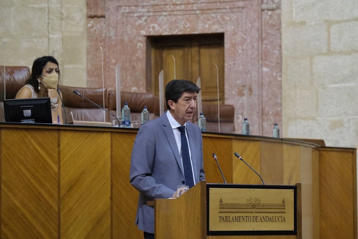 El vicepresidente de la Junta y consejero de Turismo, Juan Marín, en una imagen de 10 de junio en el Pleno del Parlamento. - JUNTA DE ANDALUCÍA