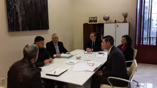 El consejero de Justicia e Interior, Emilio de Llera, acompañado del director general de Interior, Emergencias y Protección Civil, Demetrio Pérez, se ha reunido con los representantes de la Asociación de Vigilantes Municipales de Andalucía (Avimun) para informarles sobre el borrador de anteproyecto de ley de Coordinación de las Policías Locales que modificará la Ley 13/2001, de 11 de diciembre, que actualmente regula este ámbito.