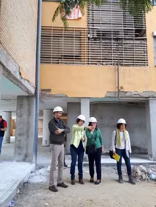 Además, se están realizando diversos trabajos de adecuación de zonas comunes en los cuatro inmuebles. En una de estas actuaciones, en el número uno de Los Gozos y las Sombras, se reforma la planta baja, eliminando la guardería ya sin uso y reordenando los accesos y el portal. En los tres minis, igualmente, se están reubicando los contadores eléctricos y de agua, y se abren accesos a las azoteas para facilitar el mantenimiento de las cubiertas, que están siendo renovadas. También se renuevan los revestimientos de los portales y se sustituyen las celosías de los patios por otras nuevas metálicas.