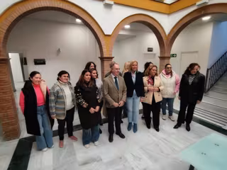 Durante su visita al grupo de alumnas, el delegado estuvo acompañado por la alcaldesa, Dolores Romero; la concejala de Empleo, Setefilla Becerra, y la técnica de Desarrollo Local, M.ª del Águila Velasco.