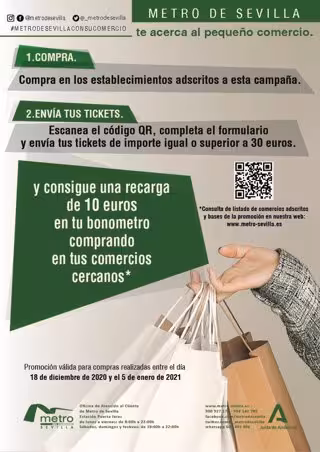 activa entre los días 18 de diciembre y 5 de enero de 2021. Durante este periodo los clientes de los comercios adscritos podrán recopilar los tickets de las compras realizadas y enviarlos a Metro de Sevilla, hasta el día 7 de enero y a través de un breve formulario.