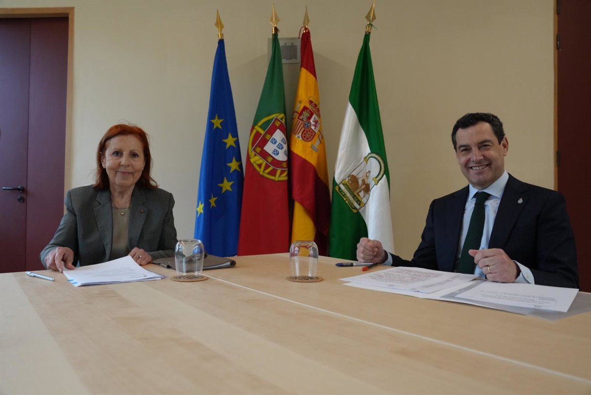 El presidente de la Junta presidente de la Junta de Andalucía, Juanma Moreno, reunido en Mértola (Portugal) con la ministra de Medio Ambiente y Energía de Portugal, Maria Da Graça Carvalho. - JUNTA DE ANDALUCÍA