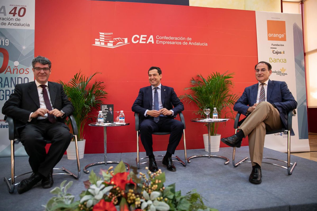 El acto se ha celebrado en la sede de la Confederación de Empresarios de Andalucía (CEA), y ha contado también con la asistencia del presidente de dicha organización, Javier González de Lara, y del exministro de Hacienda Cristóbal Montoro.