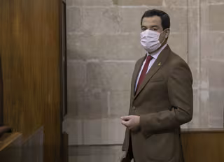 El presidente de la Junta de Andalucía, Juanma Moreno, minutos antes del inicio de la sesión de control al gobierno con preguntas al presidente de la Junta en la primera jornada del Pleno del Parlamento andaluz. En Sevilla, a 16 de diciembre de 2020. - María José López - Europa Press