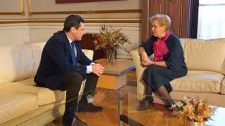 El presidente de la Junta de Andalucía, Juanma Moreno, se ha reunido este viernes en el Palacio de San Telmo con la fundadora y presidenta de la Asociación de Familias y Mujeres del Medio Rural (Afammer), Carmen Quintanilla, una organización "pionera en España en la defensa de los