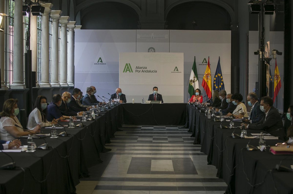 Según ha informado la Junta en una nota, éste es el primero de una serie de encuentros que el Gobierno andaluz va a llevar a cabo como "toma de contacto para escuchar a los sectores más representativos con el objetivo de plantear un aprendizaje mutuo que contribuya a la reactivación de Andalucía".
