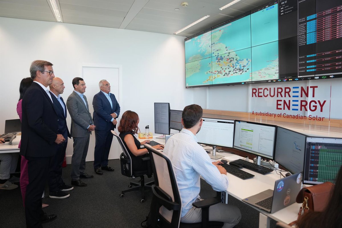 El presidente de la Junta, Juanma Moreno, ha visitado este viernes en Sevilla la sede de la empresa Recurrent Energy Construcción (Recsa) desde donde se gestionan las plantas de esta plataforma de desarrollo, posesión y explotación de proyectos de energía solar y almacenamiento que están funcionando en Reino Unido.