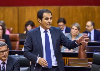 El consejero de Justicia, Administración Local y Función Pública de la Junta de Andalucía, José Antonio Nieto, durante su intervención en el Pleno del Parlamento. - JOAQUÍN CORCHERO/PARLAMENTO DE ANDALUCÍA
