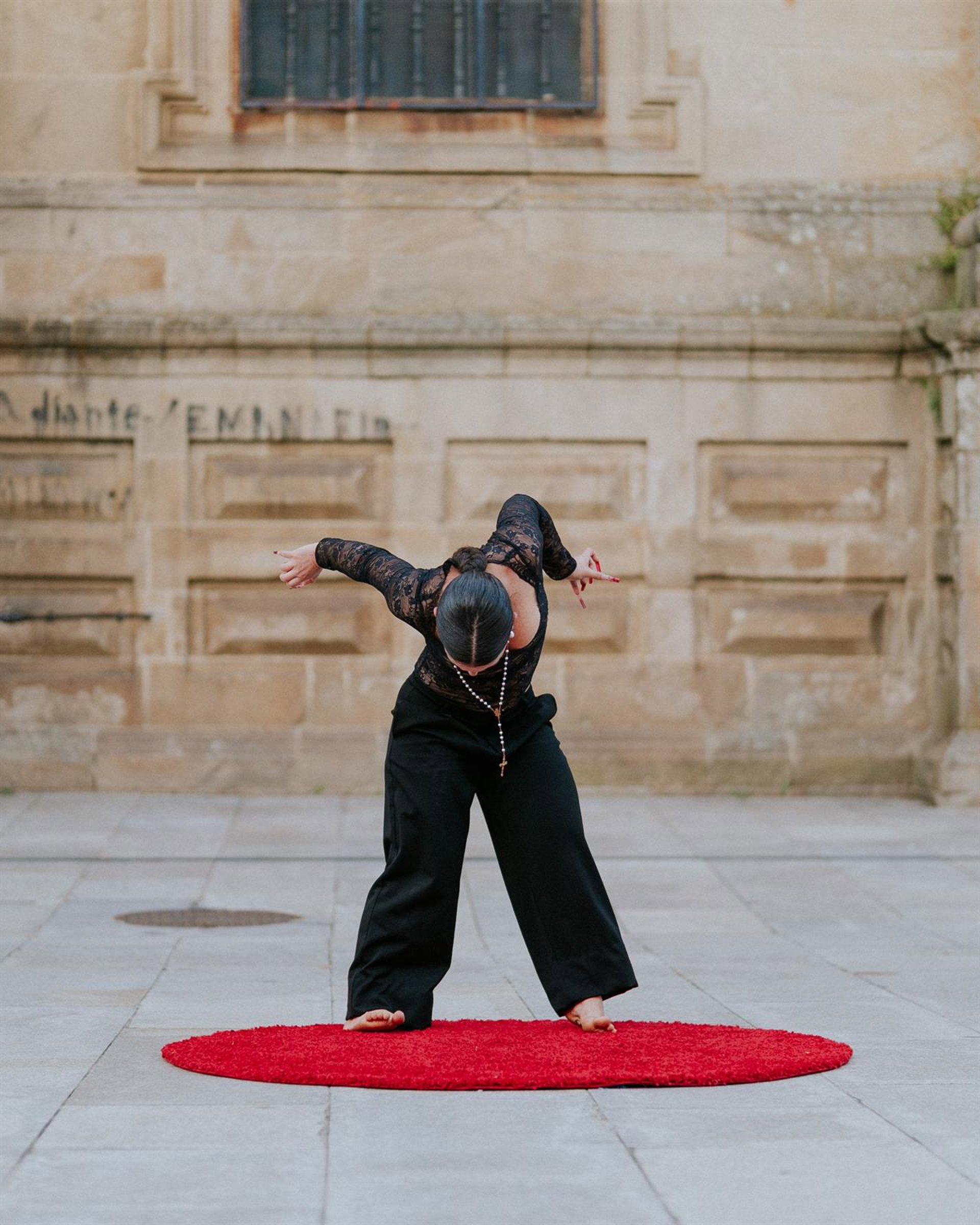El Refectorio acoge la obra 'Lola y los lamentos', de Drea Castro (La Coruña), una pieza de doce minutos que parte de un proceso de transformación personal de la artista que se inició en el verano de 2024, marcado por un asunto familiar. Este suceso, desencadenó en ella una crisis de identidad y de fe, al que da cuerpo y voz a través de su alterego escénico Lola.