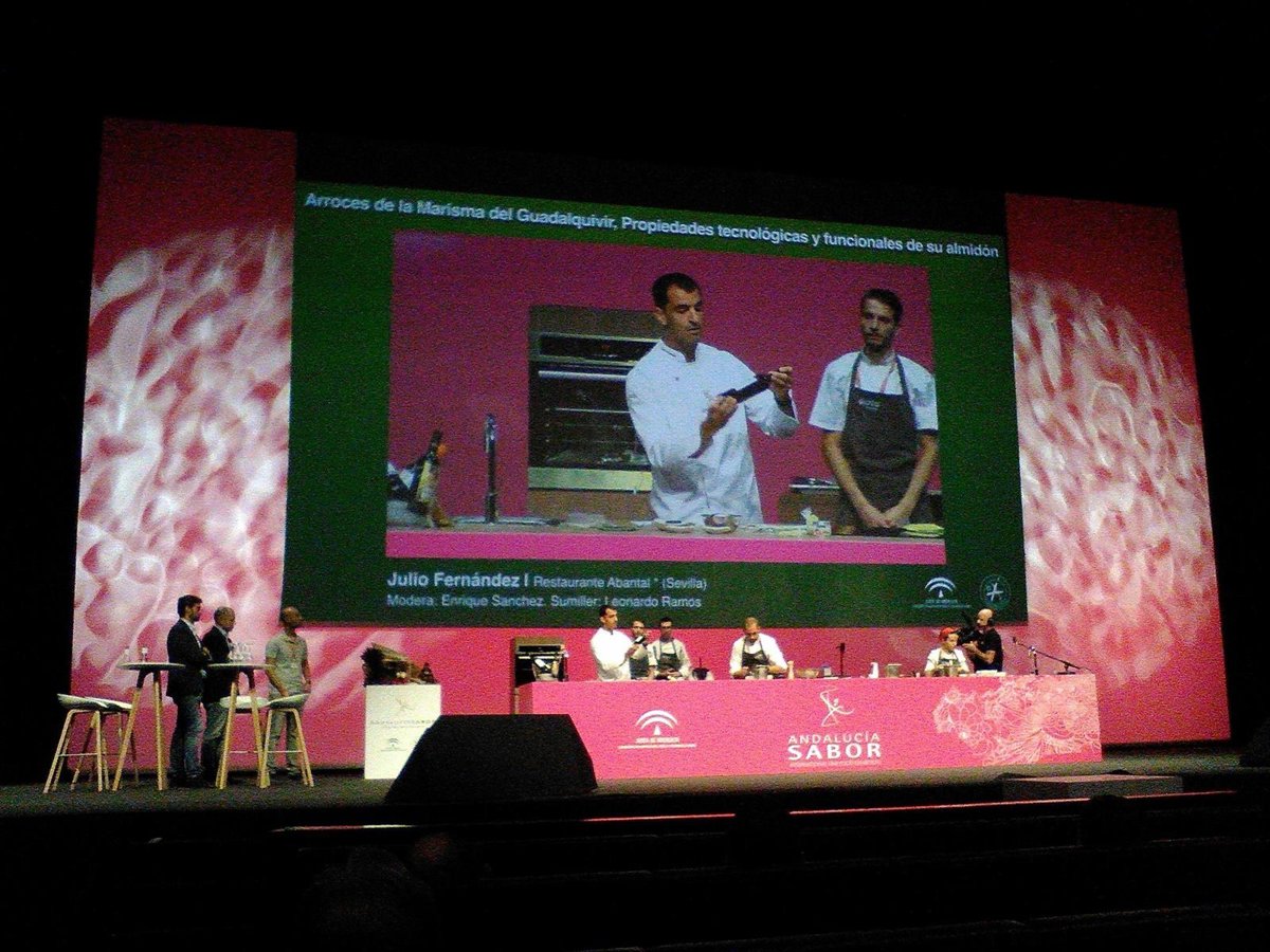 Otra de las estrellas Michelin que ha participado en la segunda sesión del Congreso ha sido Julio Fernández, del restaurante Abantal (Sevilla). Fernández ha profundizado en "una materia prima compleja, pero muy valorada por todos los cocineros", el arroz. En Abantal, de hecho, desarrollan una importante labor de investigación para sacarle el máximo partido a este cereal, un conocimiento que este chef ha compartido con los profesionales asistentes a la charla 'Arroces de la Marisma del Guadalquivir. Propiedades tecnológicas y funcionales del almidón'.