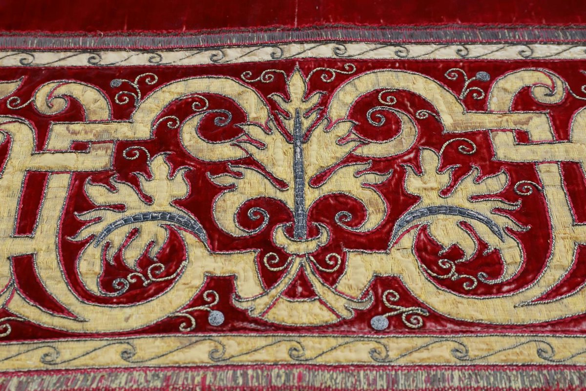 Archivo - Detalle de los trabajos finalizados de un repostero carmesí de la Catedral que han sido llevados a cabo en el IAPH, en foto de archivo. - Rocío Ruz - Europa Press - Archivo