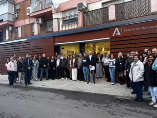 En la sede del Distrito, el acto ha contado con la presencia de la delegada territorial de Salud y Consumo en Sevilla, Silvia Pozo, junto al director gerente del Distrito Sanitario Aljarafe y Sevilla Norte, Pablo Bueno, quien ha acompañado también a los profesionales del Centro de Salud de Lora del Río.