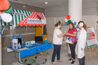 La primera de ellas se ha desarrollado este viernes y consiste en la colocación de unas mesas informativas a la entrada de los hospitales General, Traumatología, e Infantil, que han llamado la atención de usuarios, familiares y otros profesionales con los lemas '¡Ole la higiene!' y '¡Palmitas limpias al compás del paciente!'.