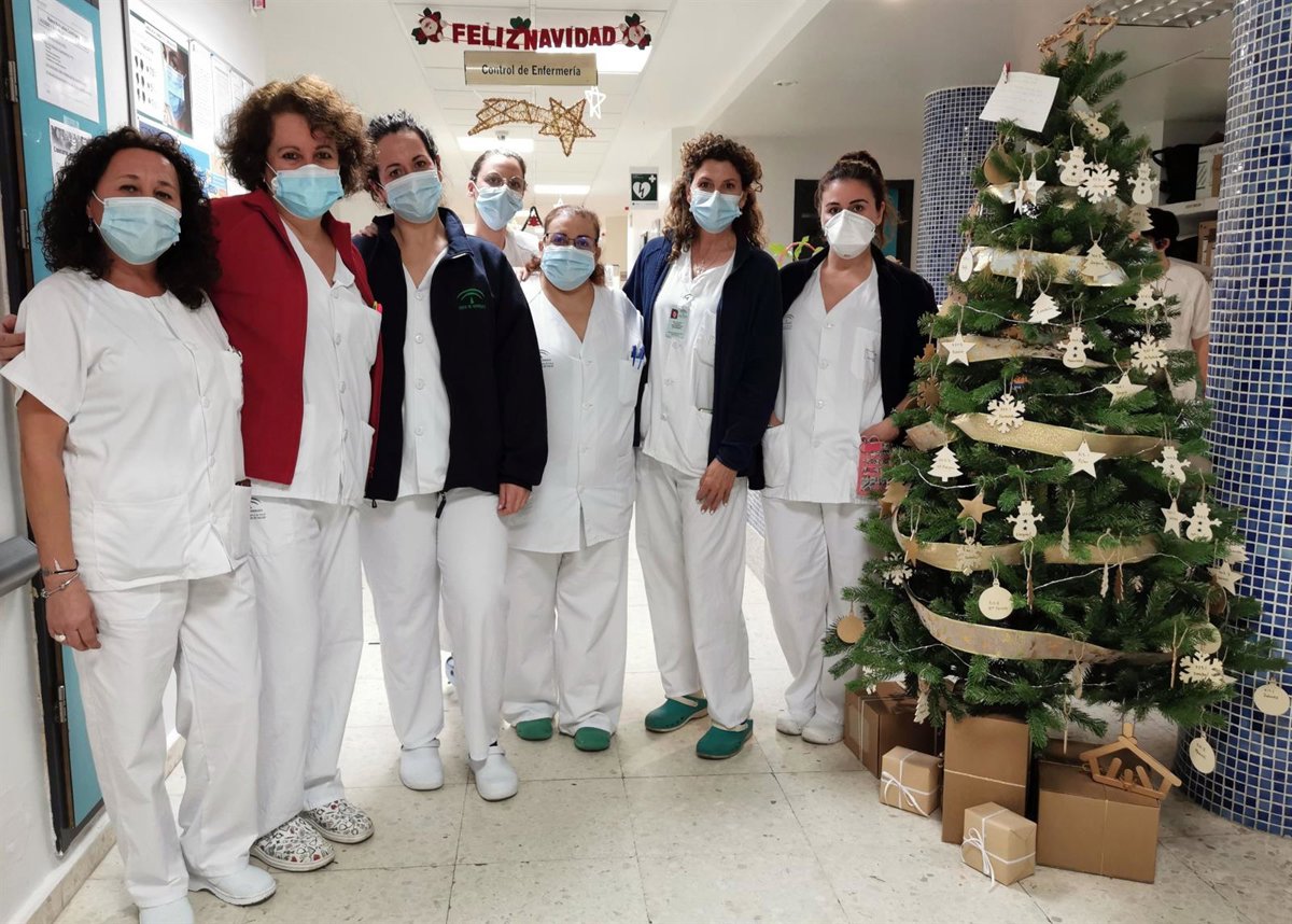 Efectivamente, la séptima planta izquierda del hospital sevillano luce este año con una ornamentación especial, llena de simbolismo y emociones que sus profesionales han dirigido hacia ausencias de los que no pudieron superar la enfermedad y aplausos con los que despidieron a los que lograron volver a casa.