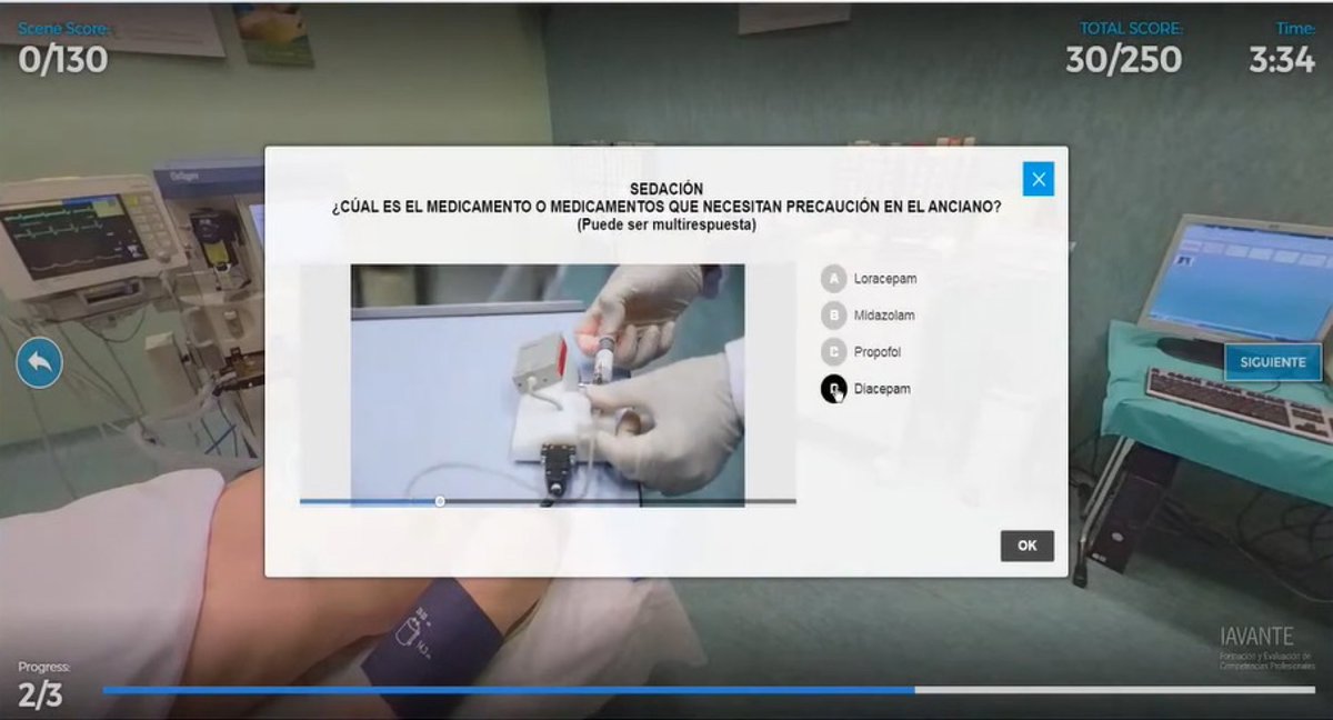 Otro recurso que Iavante ha puesto a disposición de los profesionales es la posibilidad de recorrer el centro de simulación clínica avanzada en Granada, CMAT, y entrar en cada uno de los escenarios donde el equipo docente explica técnicas y procedimientos en vídeos 360 con la posibilidad de analizar detalladamente los escenarios, herramientas y pruebas diagnósticas.