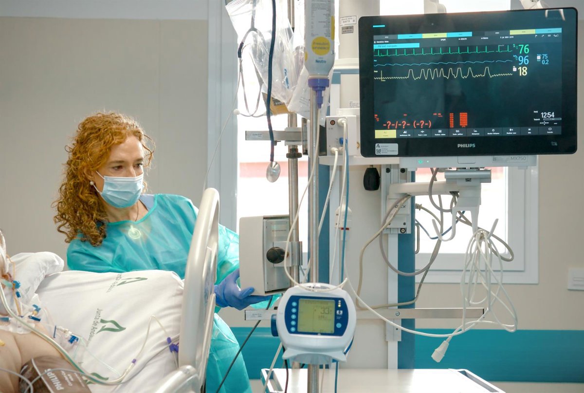 Una sanitaria proporciona cuidados de enfermería a un paciente ingresado. - HUVR